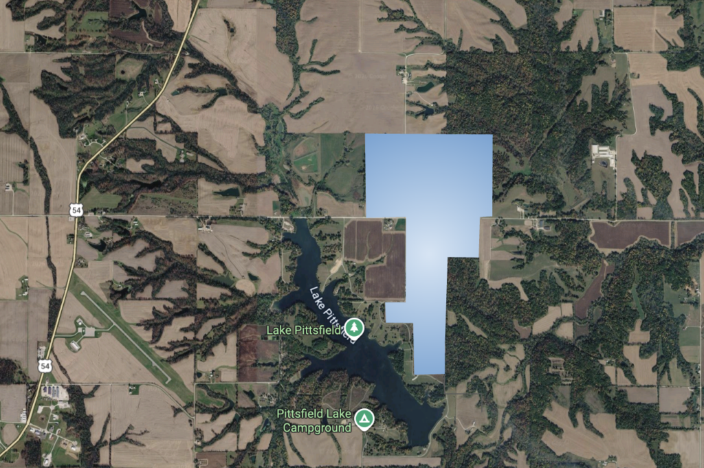 The farmland includes approximately 415 acres in seven parcels of which about 280 are row crop farmed alternating corn and soybeans each year. The Pike County parcels are: